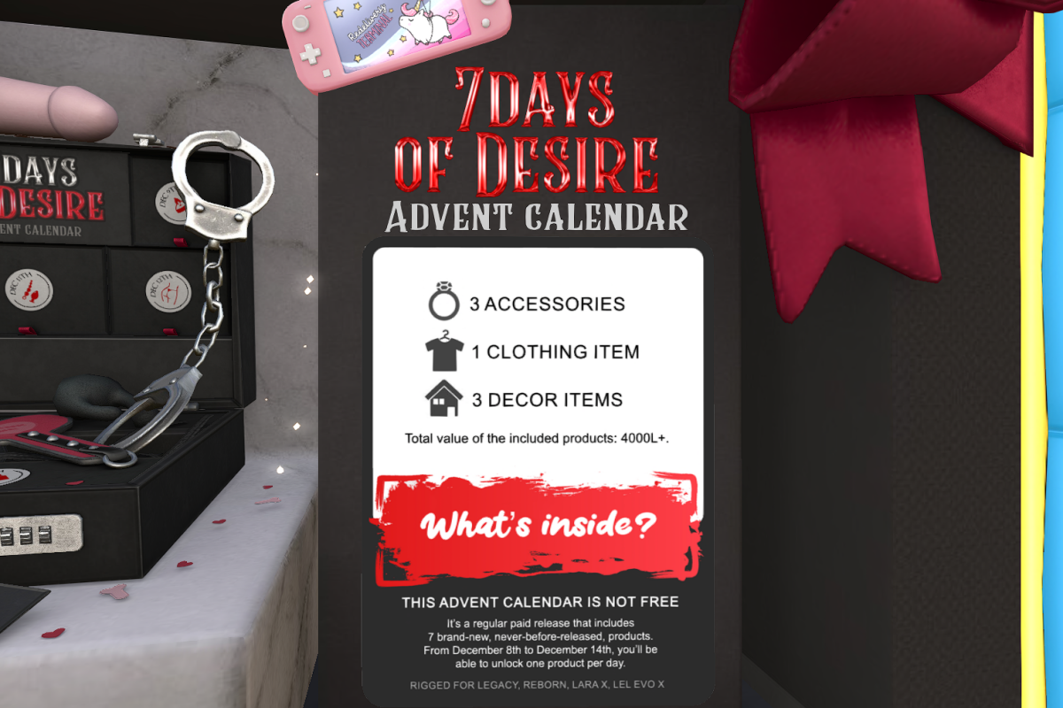 TENTACLES PREFERRED, SEAWEED OPTIONAL AT LEWD STATIONby imyspiceNovember 20, 2025Events STARTS: NOVEMBER 20TH | ENDS: DECEMBER 15TH | TELEPORT CAUTION: THIS GALLERY CONTAINS ADULT CONTENT Share this: Click to share on Facebook (Opens in new window) Facebook Click to share on X (Opens in new window) X Tags:2025Adult EventAdult EventsBUNNIEventEventsImy McGintyImyspiceLewd StationMonthly Eventmonthly eventsNovemberNovember 2025Second LifeSecondLifeshoppingSLSugarSugar SLSugarSL previousTRES CHIC BRINGS STYLE HOME FOR THE HOLIDAYS!nextGET COZY CHIC AT DUBAI