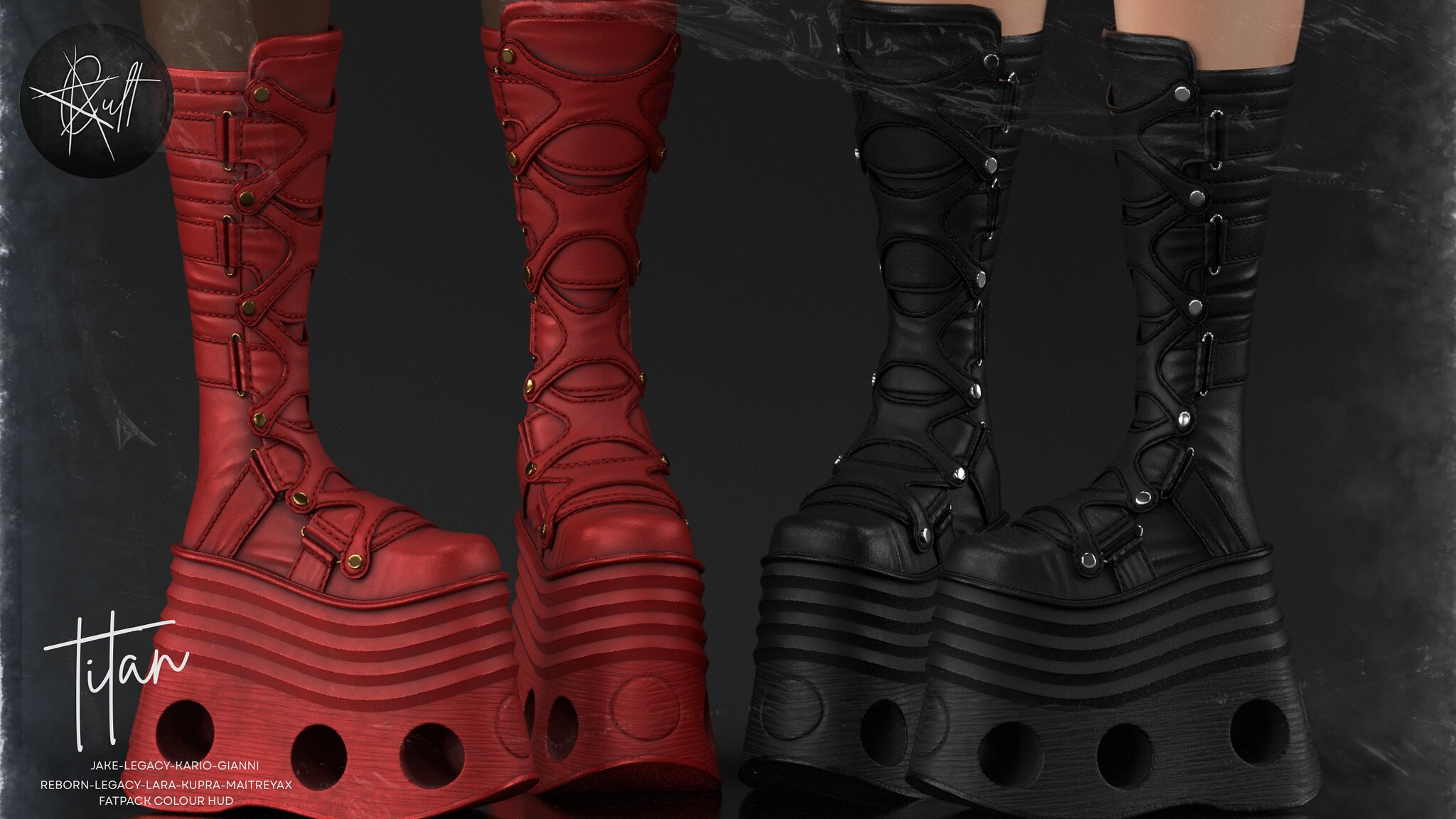 The Titan stompers are ready to kick some ass and take some names! These are rigged for Lara, Legacy F, MaitreyaX, Reborn, Kupra, Jake, Legacy M, Kario, and Gianni. Also comes with a Fatpack color hud! The Sabbath event opens February 21st!